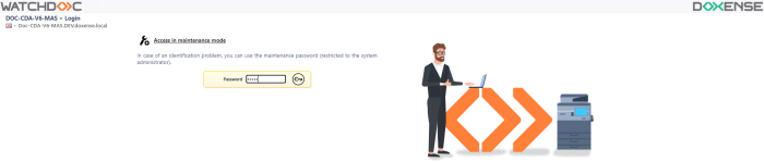 Authenticate yourself in the Watchdoc web interface by entering the password set up in the options during installation (changeme by default) (refer to Installing Watchdoc in Standalone or Classic mode),