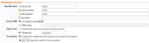 Password: This is the password that allows access to the administration interface as the Super-User. By default, the password used is the one defined when Watchdoc was installed. If you wish to change it, enter a new password into this field.