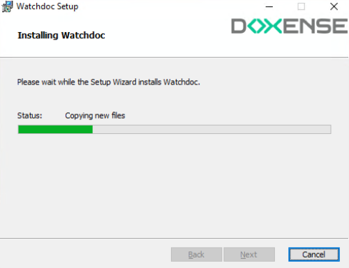 è The installation progress is displayed on the Installing Watchdoc interface:
