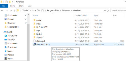 The setup tool is stored in an archive file named Watchdoc[…].zip, which must be unzipped in a folder of the server: