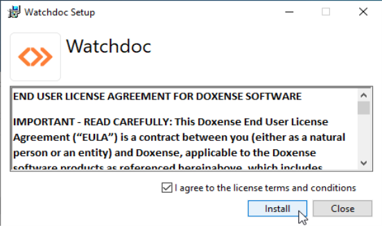 icon then appears on your desktop. Proceed to the initial setup of Watchdoc (see Access Watchdoc configuration interface).