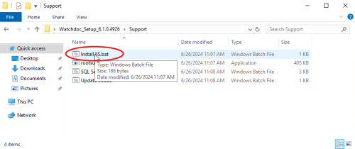 With IIS 7, it is possible to run the automated installation script for the components required for the Watchdoc administration interface to work properly. The script is available in the support directory of the installation package (install IIS.bat) :