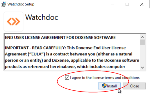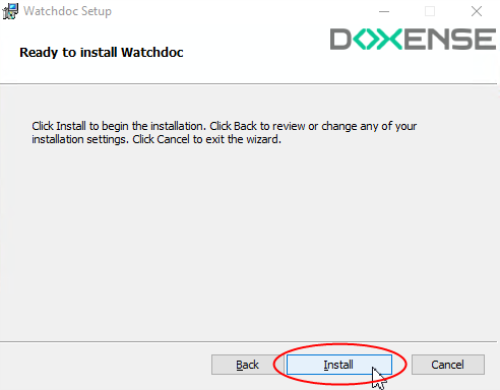In the window Ready to install Watchdoc, click on Install.