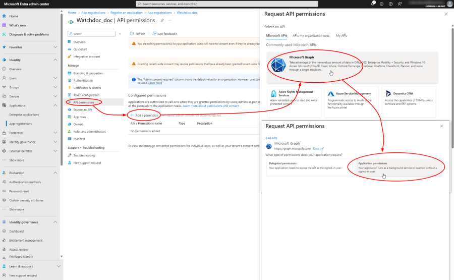 Choose the Application Permissions type, which allows Watchdoc to perform operations on its behalf without a specific user context:
