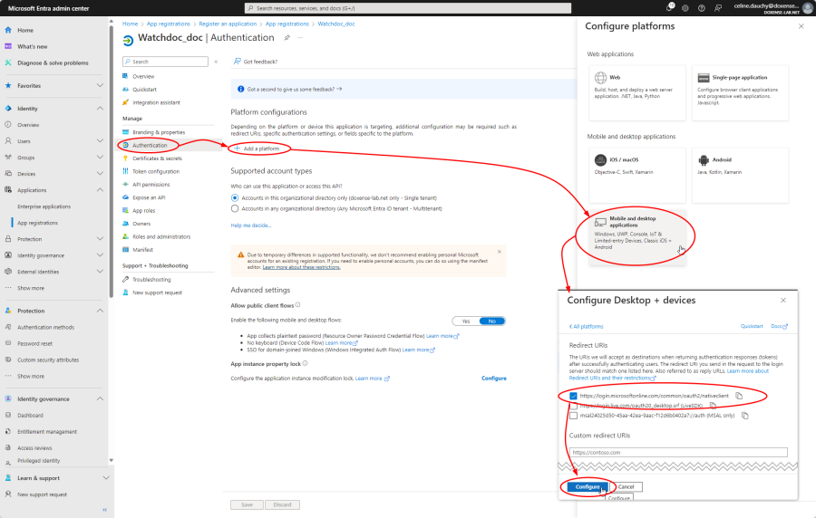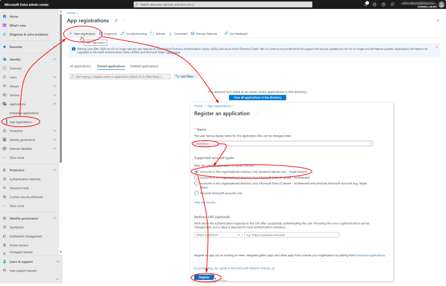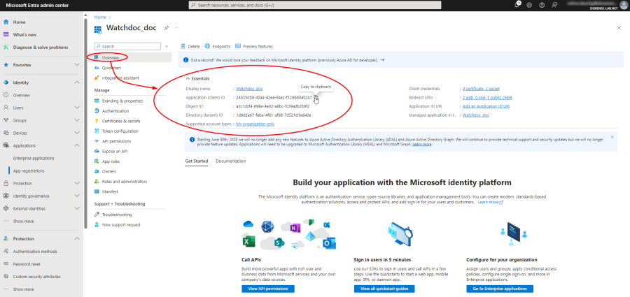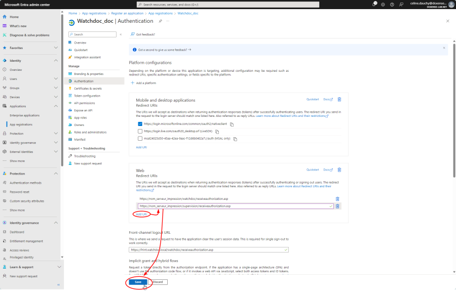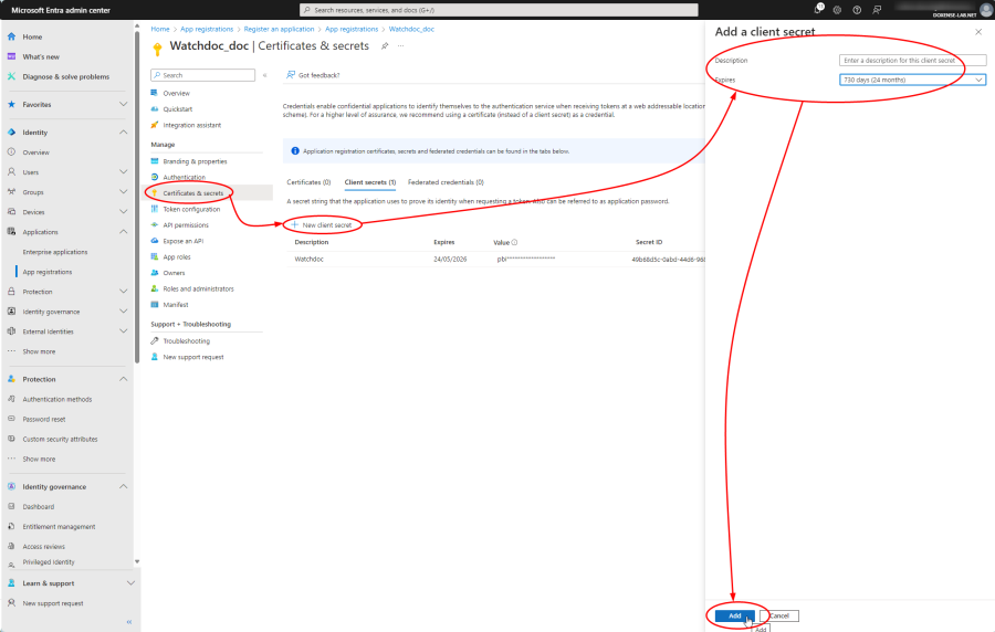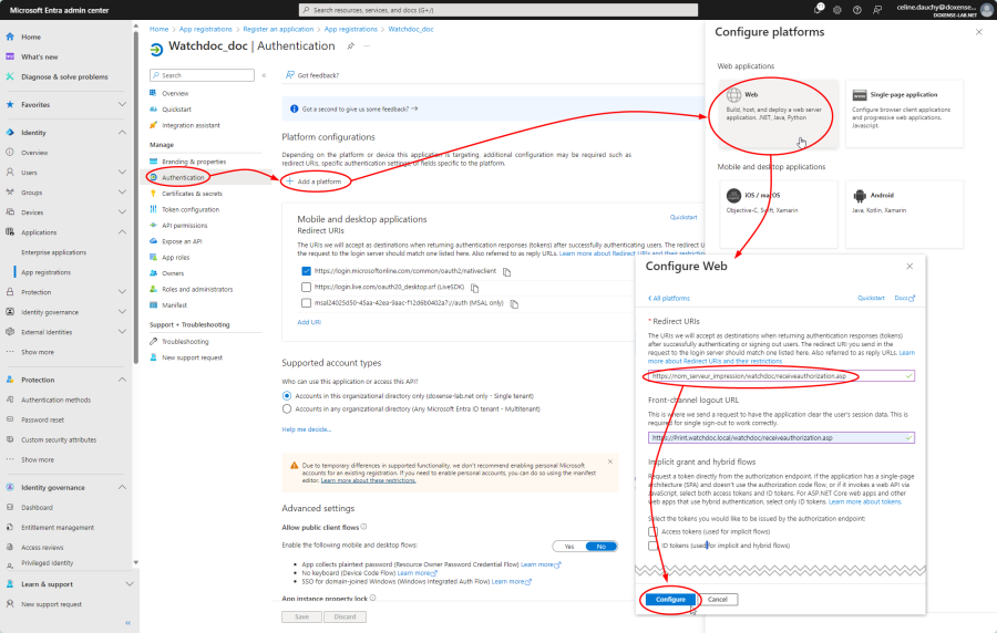 Directories - Entra - Registration of the Watchdoc application in Microsoft Entra ID
