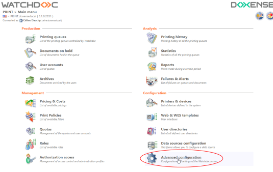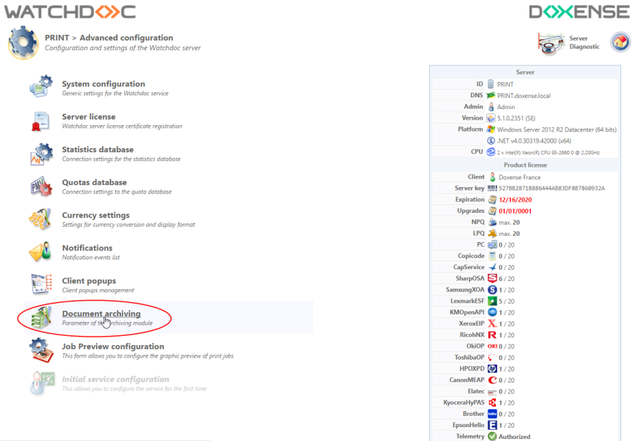 in the PRINT > Advanced Configuration, click on Document archiving.