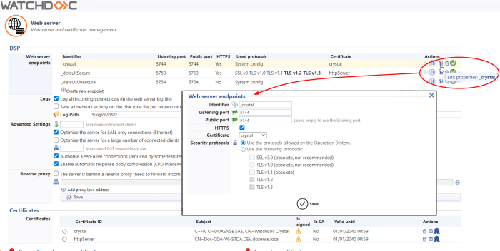 Watchdoc - Secure port 5744 using a signed certificate