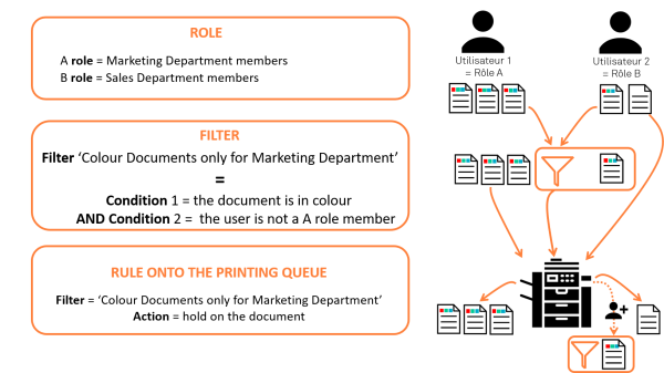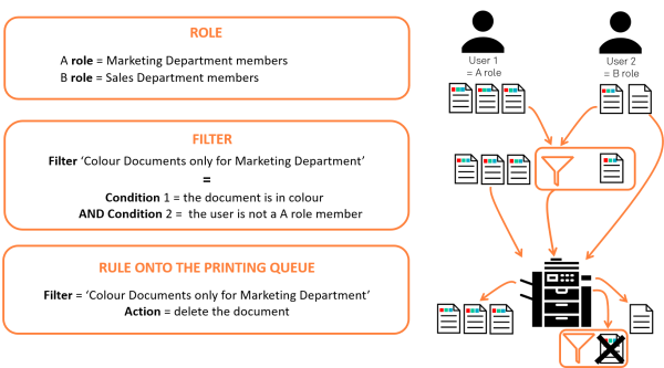 colour documents may only be printed on the queue by members of the Marketing department ;