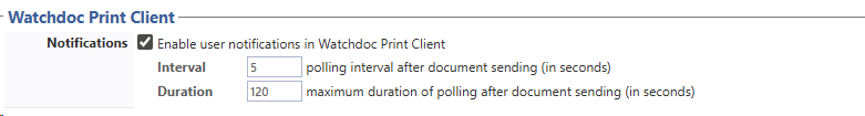 Duration: specify, in seconds, the duration during which WPC queries Watchdoc after sending the print job to find out its status: