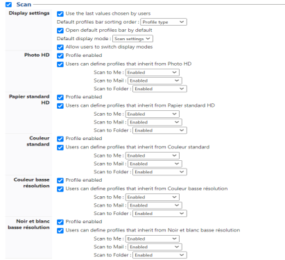 Default profiles bar: allow to offer scanning profiles (predefined settings) to users, that saves time when the scanning uses are often the same;