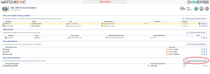 In Watchdoc, the post-scan processing configuration consists of specifying: