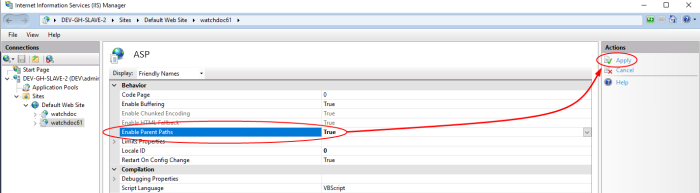 In Internet Information Services (IIS) Manager, click on the ASP icon;