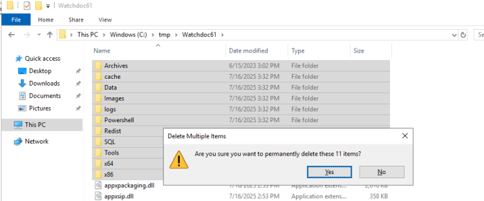 copy this folder and paste it into another temporary folder (e.g. ‘C:\tmp\Watchdoc61’). This folder must remain intact during the update of all servers. You can delete it once the update has been validated.