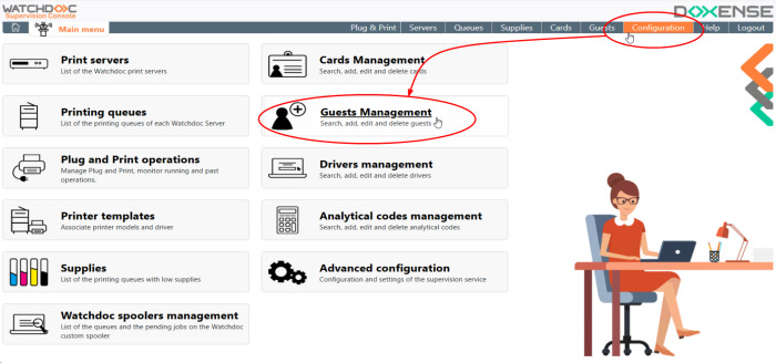 In Watchdoc, Guest management allows you to manage a database in which Guests, users who are not registered in the Watchdoc directory, are recorded. To obtain precise information about users in the Watchdoc print history, you need to configure the confidentiality settings on the print device.