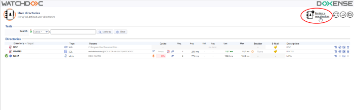 In the User directories interface, the list of directories appears.