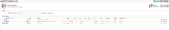 → You will gain access to the list of directories declared for your Watchdoc instance, comprising two sections: Tests and Directories: