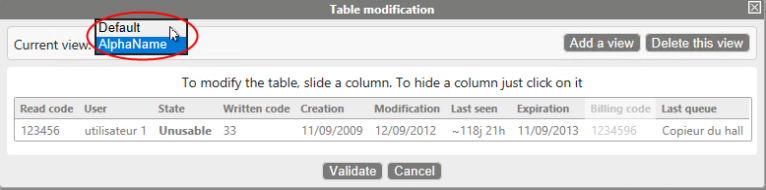 → you access the Cards Management interface, in which are displayed the cards already registered.