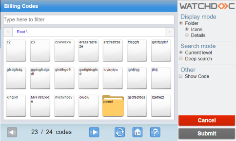 When the Analytical codes function is enabled and when the WES is compatible, the user can enter a analytical code when they confirm their print job so that they will be billed to a specific account chosen from the device display thanks to its compatibility with WES.
