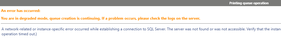 N.B.: in the event of a malfunction, Watchdoc and WSC may operate in degraded mode. In this case, certain operations may be continued in degraded mode. A message will inform you of this: