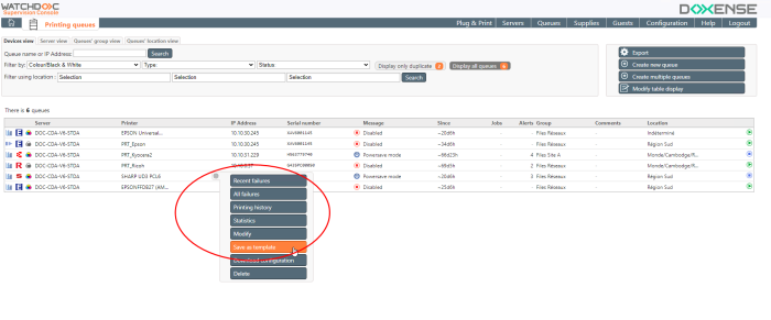 → Once the printer template has been saved, you can create one or more print queues from this template. All print queues will then be configured in the same way.