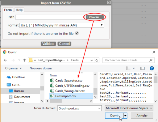 To import a cards list in the supervision console, it's necessary to have, beforehand extracted the guests in a .csv file (cf. Mass import of guests).