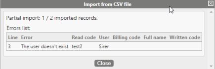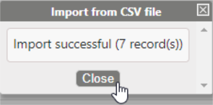 è At the end or this operation, a message is displayed to inform of the success or to alert about the errors that occur while importing: