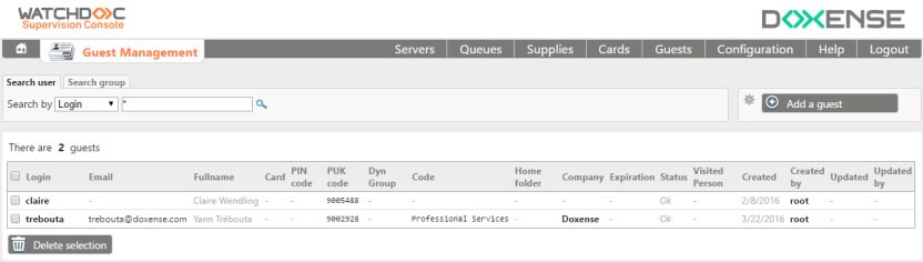 The Watchdoc Supervision Console had a tool allowing the mass import of a list of guests extracted from a third database.