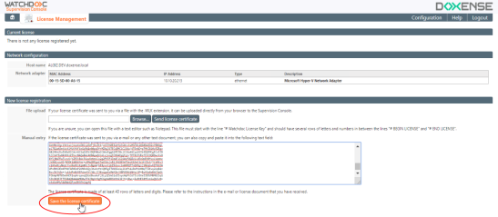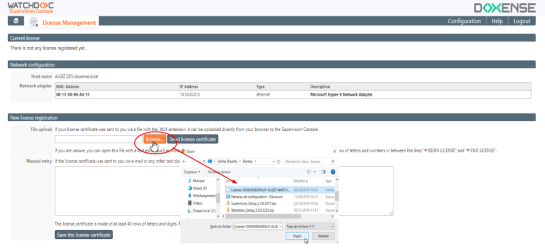 In the License Management interface, click the Browse button to select the license file provided by Doxense® ;