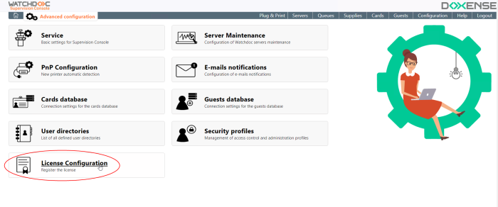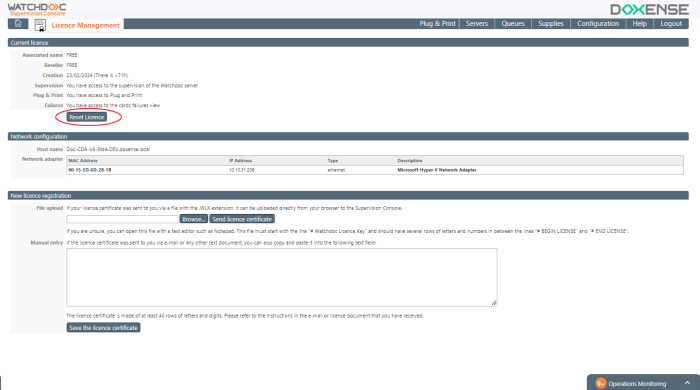 If you are installing Watchdoc and WSC for the first time, you do not need to perform this step: the WSC licence installed by default is FREE and requires no modification.