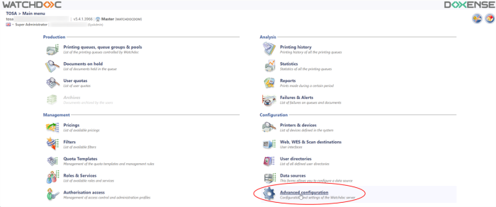 The operation of the Watchdoc Supervision Console (WSC), requires the prior activation of the Telemetry setting in Watchdoc®. This activation allows the sending of the operating data to the server hosting WSC.