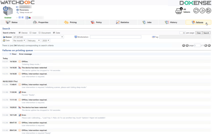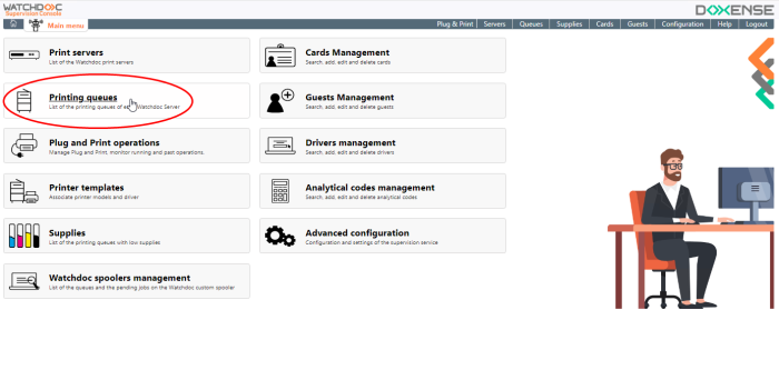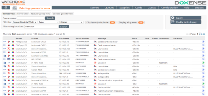 The Supervision Console provides detailed and refined views of the print queues controlled by Watchdoc, especially malfunctioning queues.