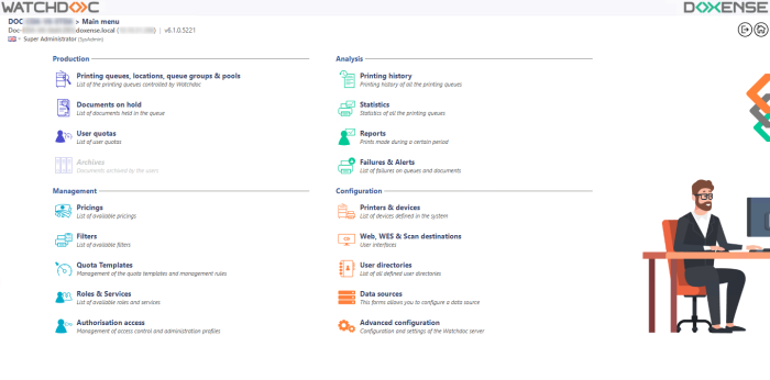 By default, Watchdoc uses the user accounts for your domain. You can create guest accounts in the supervision console: