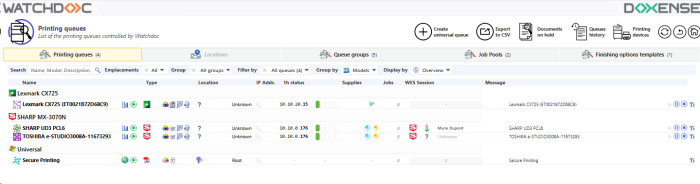 è Once the initial configuration of the service is complete, Watchdoc displays your server's print queues in the Printers & devices interface: