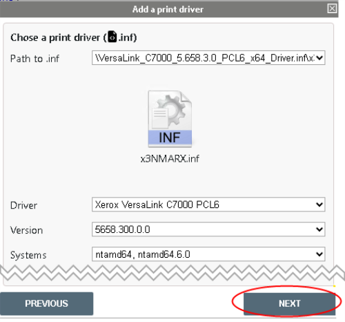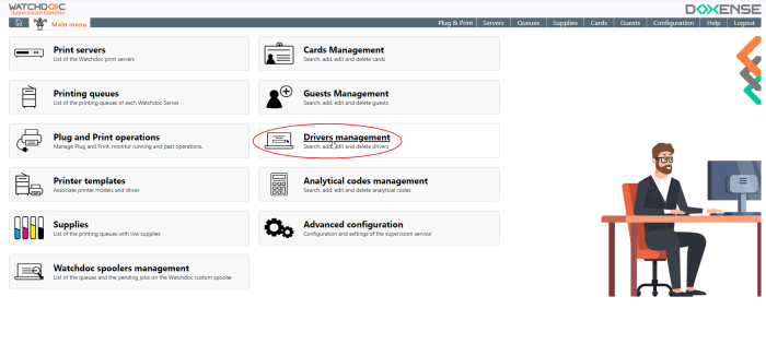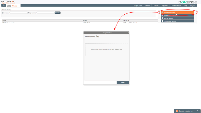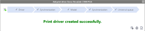 → Watchdoc deploys the driver on the print server and creates the universal queue (for more information, see Configuring a universal queue.)