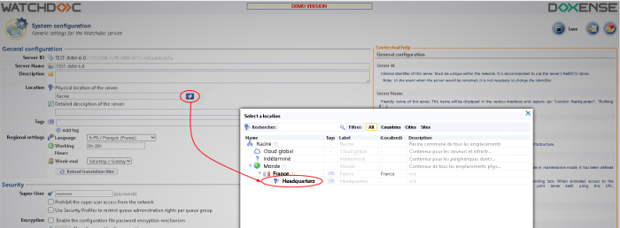 in the General Configuration section, Location parameter, click on the selection button ;