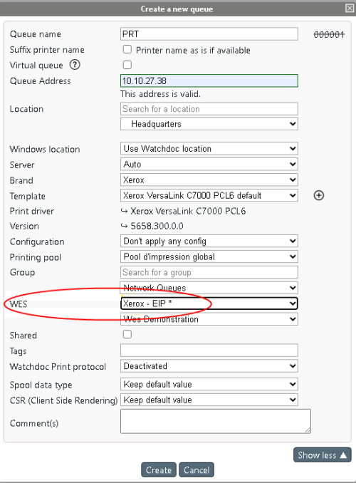 To secure thedevice with the WES, click on Show more and set the WES profile in the WES drop-down list :