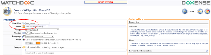 Identifier: enter the unique identifier for theWES profile. It can be made up of
