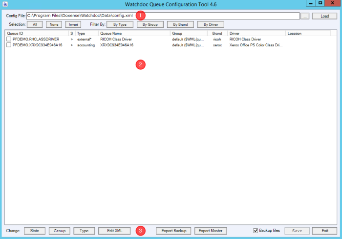 Watchdoc ConfigTool is a utility for mass-processing Watchdoc features on print queues.