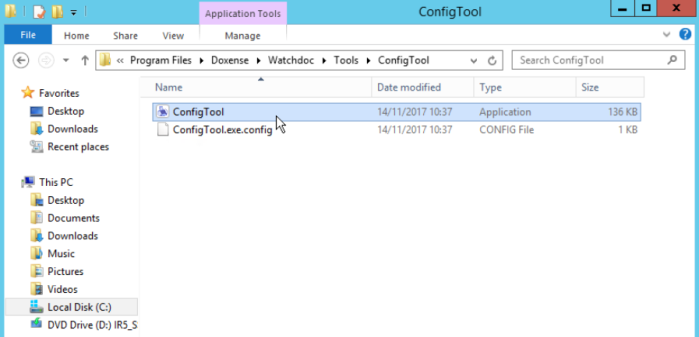 ConfigTool.exe is a tool provided ed in the Watchdoc installation package. This executable is located in the file where Watchdoc is installed (by default c:\Program Files\Doxense\Watchdoc\Tools\ConfigTool).