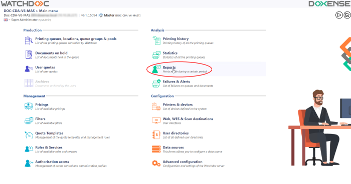 log in to the Watchdoc administration interface as an administrator;
