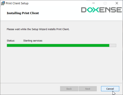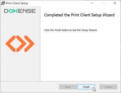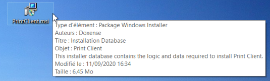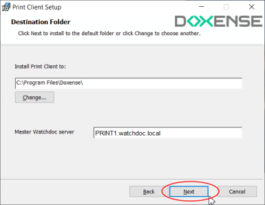 Install Print Client to: enter the path of the workstation folder in which the Print Client must be installed (C:\Program Files\Doxense\ by default);