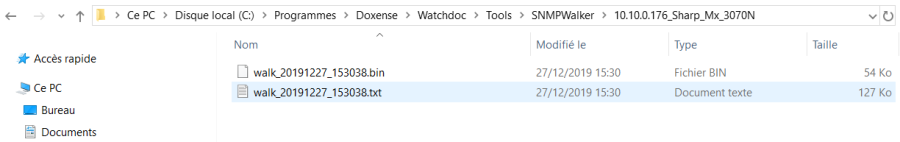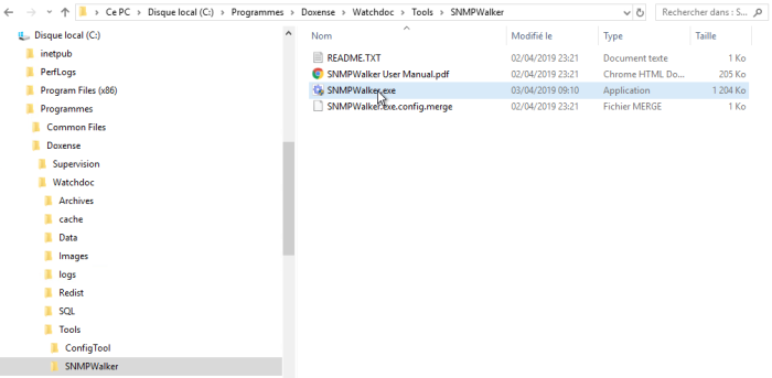 using an explorer, access the SNMPWalker folder saved by default in: C:/Programs/Doxense/Watchdoc/Tools/.