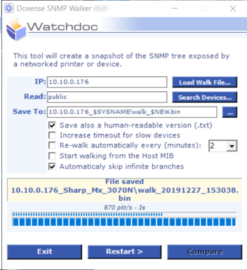 è In the SNMPWalker folder, open the walk[...].txt and walk[...].bin files to read the analysis and or send them to the Doxense Support team: