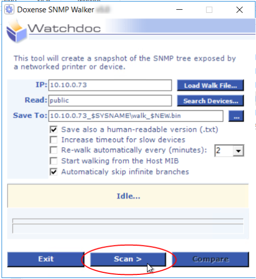 in the Doxense SNMP Walker tool, click on the Search Devices button;