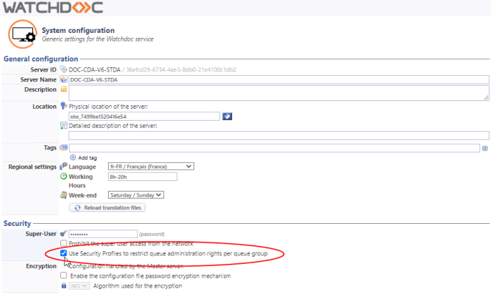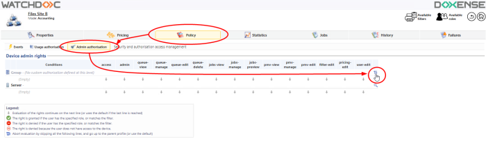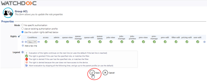 Watchdoc - Rights - Manage administration rights for a group of queues