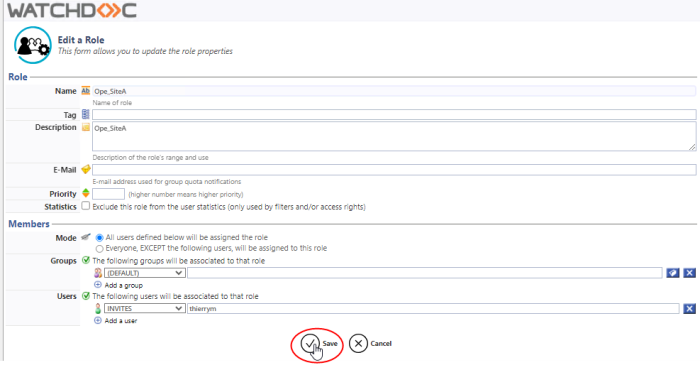 To configure these rights, it is ideal to have separate user groups created in the directory (‘Operators_Site_A’ and ‘Operators_Site_B’, for example). In this way, it is not necessary to change the role in Watchdoc when members join or leave the group.