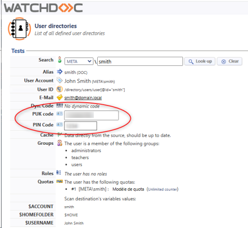 Since version 6.1.4926, identification codes (PUK, PIN, etc.) are included in the data covered by the "View user identities" administration role.