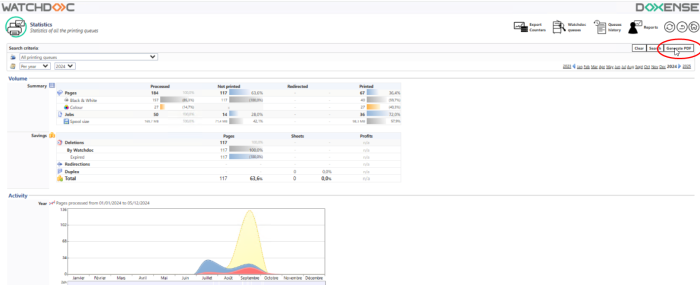 From the 5.1 version, it's possible to create a .pdf file with the statistics data displayed in the consultation interface.
