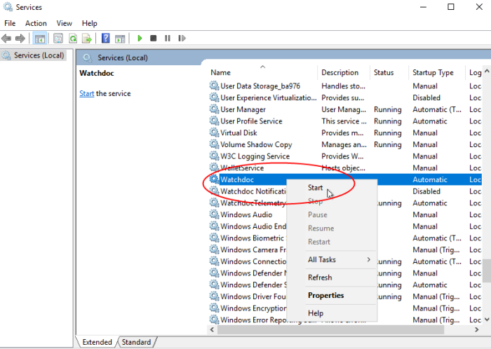 in the server on which Watchdoc is installed, launch the MS Windows® service manager (Start> Services);