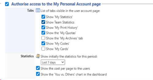 As an administrator, you want users to be able to see their team statistics in addition to their personal statistics on their ‘My Account’ page. You should: